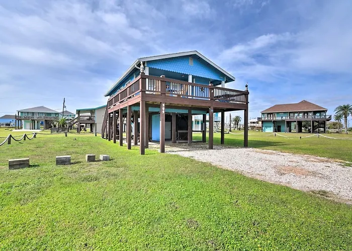 La villa Colorful Crystal Beach Home With Ocean View!, de 80 m^2, se sitúa a 3 km de distancia de la Ramada Beach y a 95 km del Aeropuerto William P. Hobby. Las habitaciones de esta villa tienen internet de alta velocidad, TV de pantalla plana con canales vía satélite y detectores de humo.